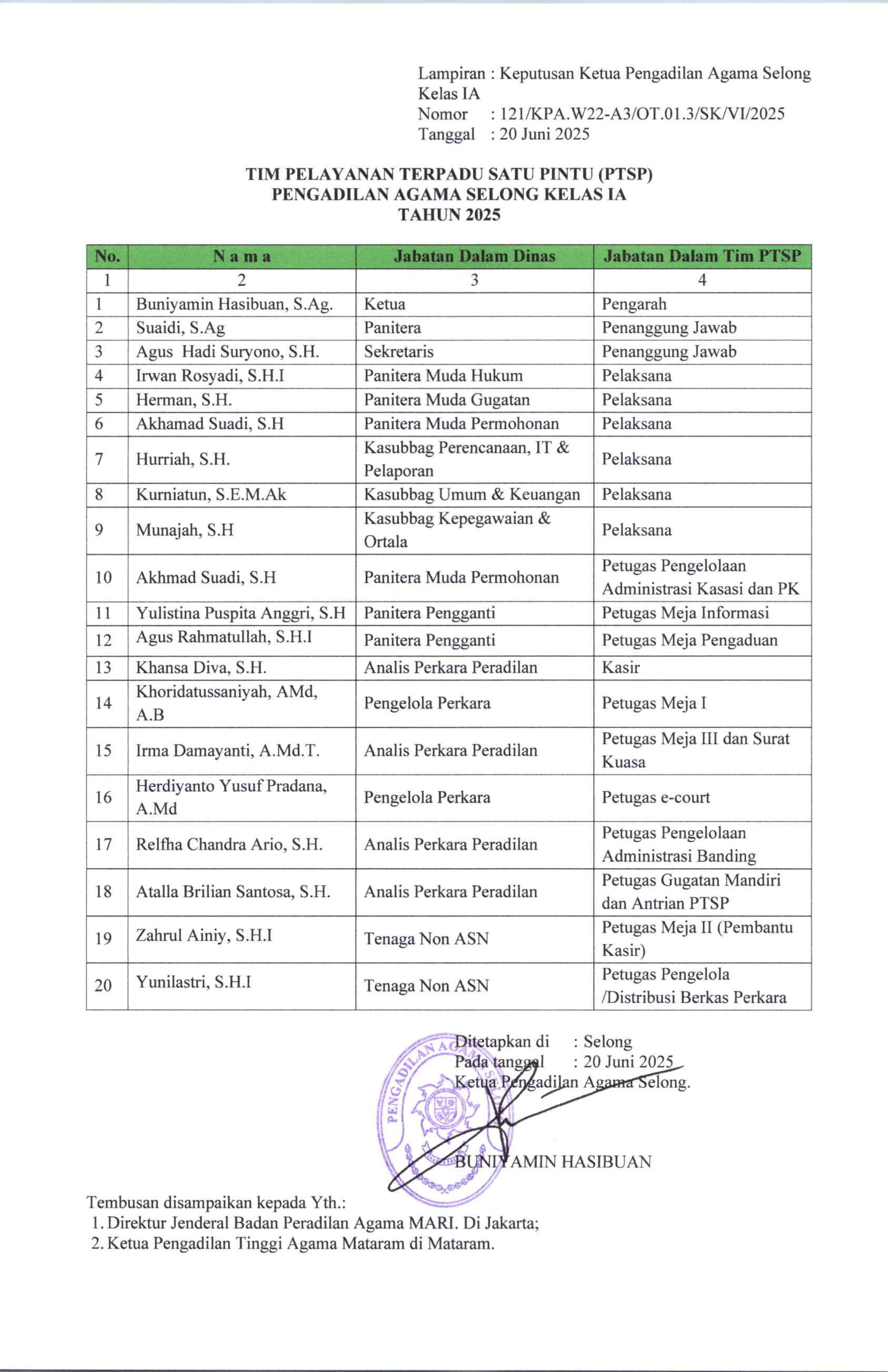 Ikrar yang diucapkan dan disaksikan oleh Ketua dan para pegawai PA Selong itu lalu ditandatangani oleh tiap-tiap pegawai honorer. Segera setelah itu, Ketua PA Selong menyerahkan SK pengangkatan kembali sebagai pegawai honorer.